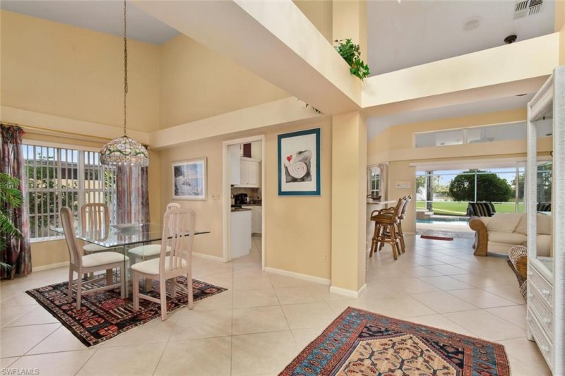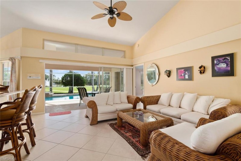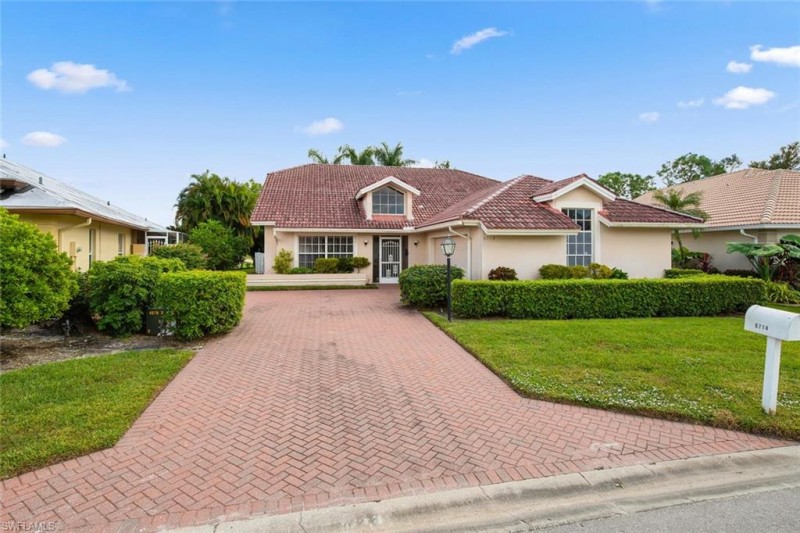This Beautiful Heated Pool Home is on the 1st Fairway in Glen Eagle. Featuring 3 Bedrooms, 2 Baths, 2 car Garage. Spectacular Lake and Fountain Views as well Golf Course. Located in Glen Eagle Golf and Country Club just 5 miles from area beaches and coveted downtown Naples. Surrounded by lush, tropical landscaping the exterior boasts a private pool and lanai with a large screen cage. The fees include unlimited golf. Inside, this lovely home features vaulted ceilings, tile and carpet flooring and custom mirrors. Glen Eagle Golf & Country Club is an amenity laden development and boasts a newly renovated 70-par golf course designed by Gordon Lewis, clubhouse with restaurant, fitness center, community pool, lighted Har-Tru tennis courts, bocce courts, billiards room, card room and more. Small Dog ok with Fee.