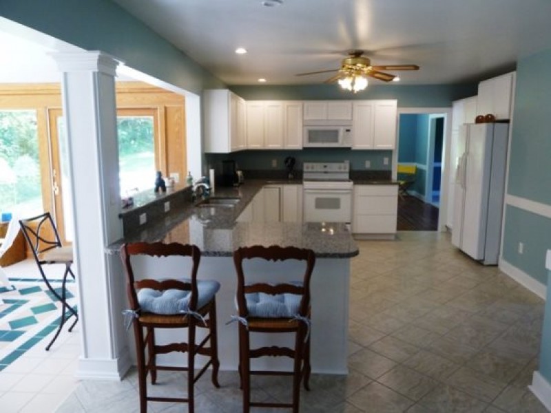 This gorgeous home is located directly on the river and has beautiful mountain and river views with a private concrete river access ramp and large open lot for plenty of outdoor games. River use and access ~ We offer free use of two Old Town Discovery canoes with paddles and vests. Bring your fishing poles and enjoy excellent small mouth bass fishing or just enjoy the river with our park like setting and concrete river ramp for easy access. The river is excellent for fishing, kayaking, tubing, or canoeing with pick up points conveniently located at the property.
