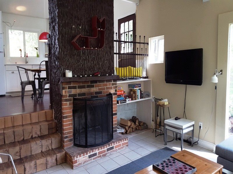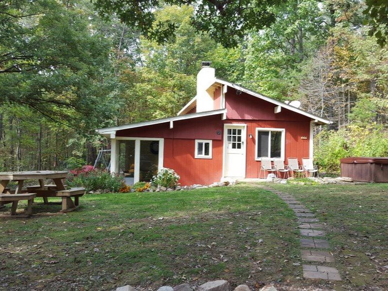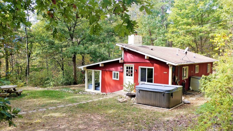 Nestled in the heart of the Shenandoah Valley between the Skyline Drive and Massanutten Mountain, this River Escape rests above the banks of the beautiful Shenandoah River and is walking distance to Shenandoah River Outfitters to book river trips. It is the ideal location for a romantic retreat or a relaxing family getaway. River Escape features a sunken living room with floor to ceiling windows, a giant wood burning fireplace, and a 42-inch LCD HDTV with Dish Network. The newly renovated kitchen includes everything you would need to cook up a storm and serve it on and a reclaimed lumber 8-person dining table. The Master Bedroom has a queen sized-bed and a private bath with his and her vanities and a multi-jet steam shower. The Guest Bedroom has a queen-sized bed and TV. The third bedroom has one twin bed and a twin bunk bed. River Escape's unique design boasts vaulted ceilings throughout, with lots of windows and natural light. Outdoors features a charcoal grill, yard swing and fire pit with four Adirondack chairs, not to mention the beautiful surroundings. The cabin is regularly being improved by the owners and the photographs above may be slightly outdated. Visit us on Facebook at: www.facebook.com/LurayRiverEscape for the latest updates and activities.Excludes Peak Season and Holiday Periods