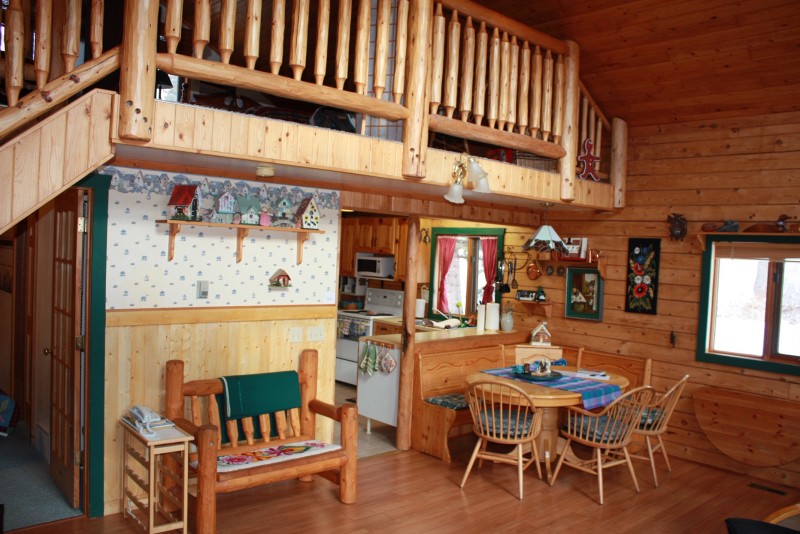This complete log-cabin consists of a main floor and an upper floor loft.