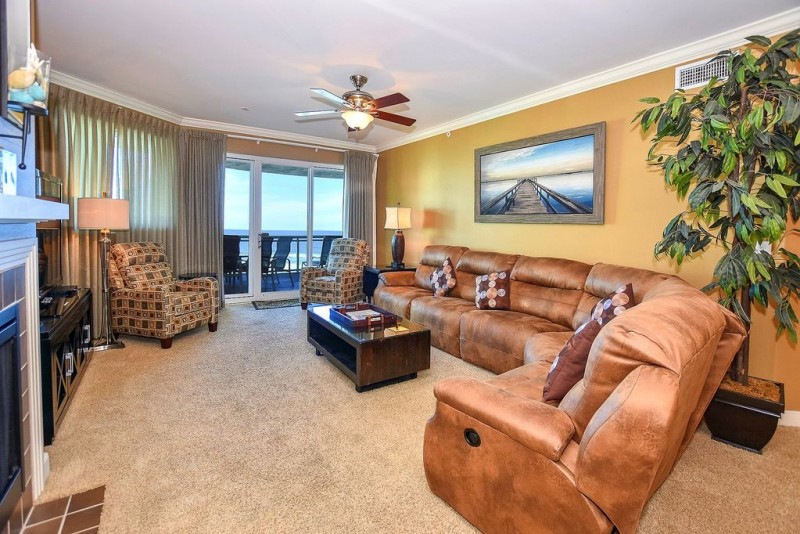 3000 square foot ocean front 4 bedroom 3 bath condo has 2 king suites, 1 queen suite, 2 twin beds, and 4 full twin sized roll away beds that can be moved anywhere in the unit. The Master bedroom, guest King, Living Room, & Queen Suite all open onto the balcony. The balcony features it's own grill for water side dining.