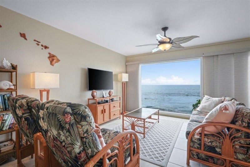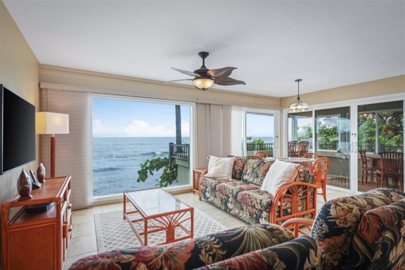 Oceanfront Banyan Tree 200 in Kailua Kona, 2BR, 2BA, perfect for 4 guests.