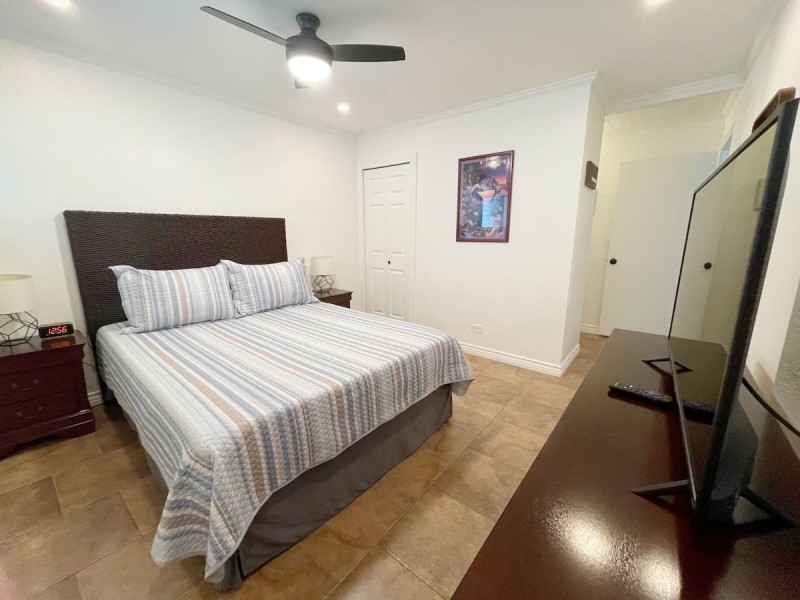The living area is designed for relaxation, featuring a television with cable/satellite access for your entertainment. Stay connected with high-speed internet and enjoy the comfort of air conditioning and ceiling fans throughout the unit.