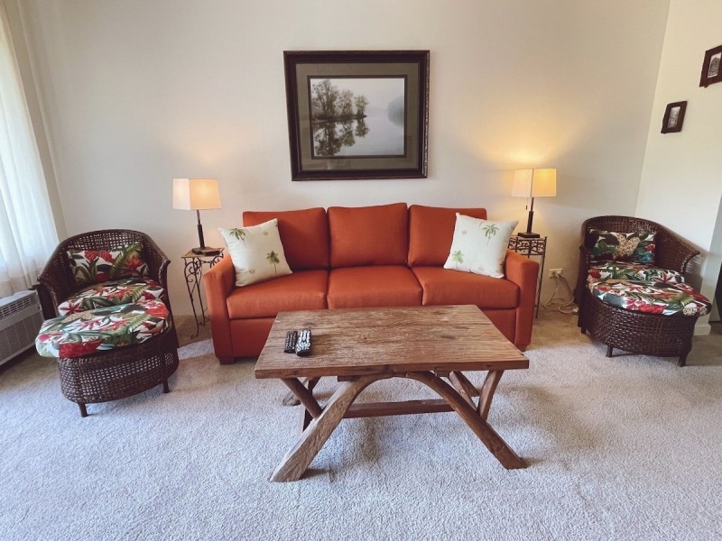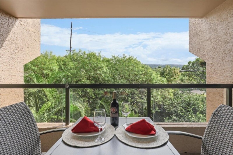 Two window ACs keep the unit comfortably cool, while the bedroom boasts a queen-sized bed. We've meticulously prepared this condominium to provide you with a memorable stay on the Big Island of Hawaii. Hualalai Mountain stands majestically visible from the lanai, offering breathtaking views.