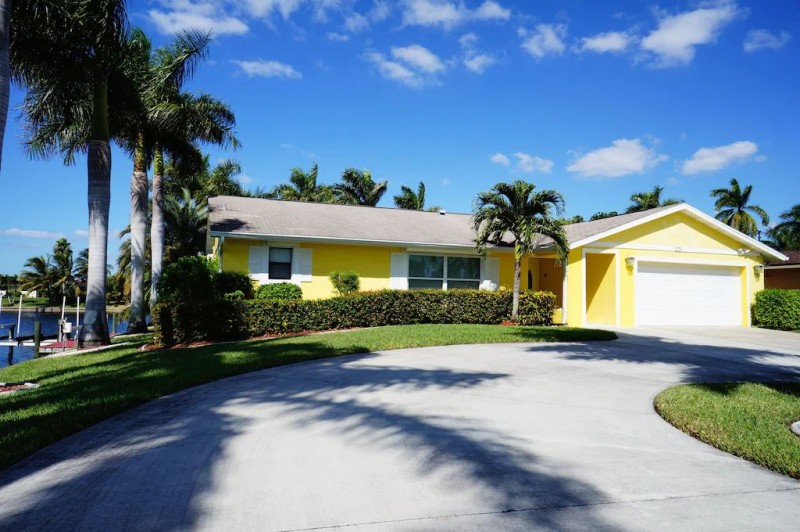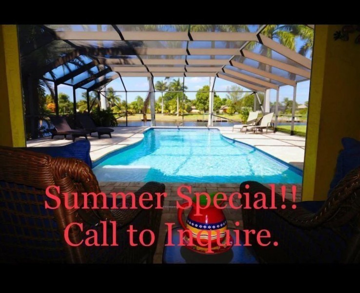 Newly remodeled in south east Cape Coral. It includes a new 40 x 14 electric heated pool with a large screen enclosure. Enjoy swimming laps in a pool that is not only long enough to do so but also while having the pool temperature where you want it to be no matter how warm or cool it is outside. Invite your friends over for a great time at this oversized pool for the perfect pool party. The home features all new appliances, plumbing, light fixtures, kitchen cabinets, granite countertops and tile floors throughout the entire house. It has an open floor plan. This home has been remodeled from the ground up and also includes crown molding and brand new furniture purchased in December of 2009. Enjoy the large patio or even sit back and relax watching cable TV. Should you be here on a business trip the home has high speed internet and phone service. Smaller dogs allowed!!!! The yard has been fully redone. New landscaping includes large palm trees and beautifully decorated flowerbeds. Enjoy the water views of this corner lot on wide intersecting canals. Or sit on the patio to enjoy the beautiful Florida sunsets at this prime location. The home features a large circular driveway in case you have lots of guests over and this way no worries for parking. The house has approximately 1800 sq ft of living space and also 1900 sq ft of lanai and pool area. The neighborhood is nice and quiet and close to downtown cape coral.