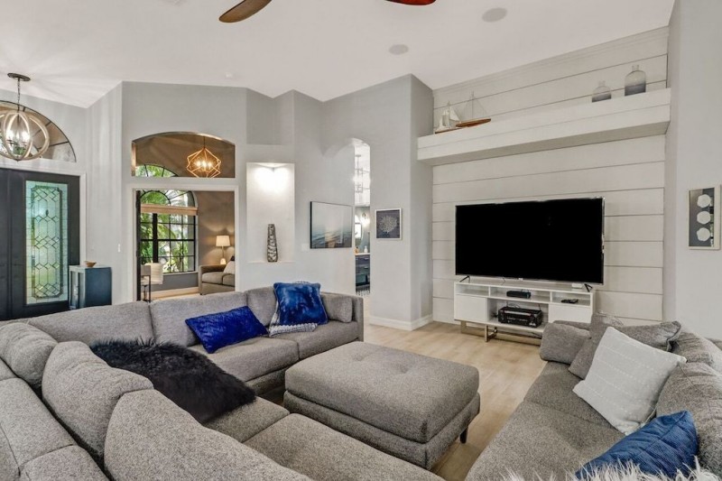 The beautiful and luscious pool area surrounded by palm trees will make your vacation one to remember. Enjoy the waterfront view, take a swim in the electric heated pool or entertain your friends and family by the water for a nice BBQ. The pool area is not screen protected for best sun lounging results but has a mosquito misting system that sprays for bugs automatically. This system will ensure that you are not bothered during family dinners outside or even while lounging in the pool.