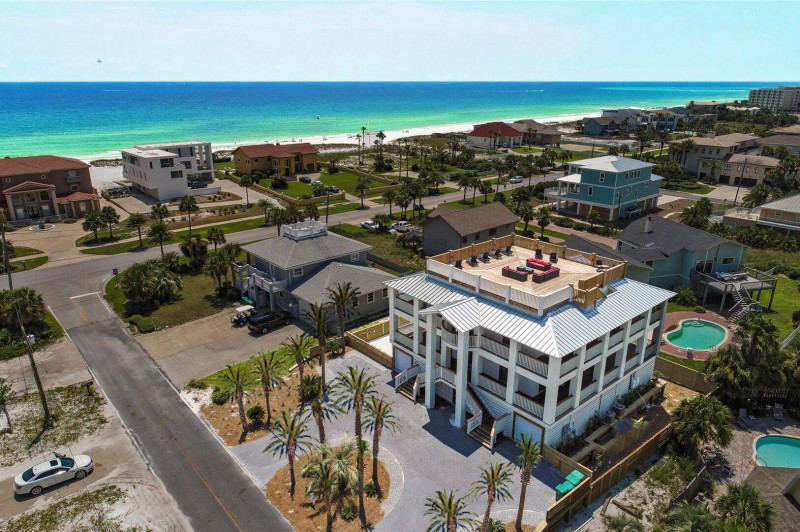 This incredible modern coastal luxury home is conveniently located right next to the beach and has private deeded beach access! You won't be stuck behind 6 rows of chairs and umbrellas blocking your views, you'll get to be front and center to enjoy your own private beach the way you expect it to be!