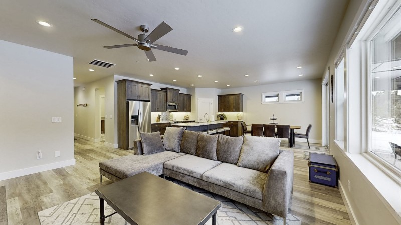 This single-level home boasts all the comforts you desire. Sink into plush sofas, cook up your favorite meals in the fully equipped kitchen, and rest easy in cozy bedrooms. Step out onto the back patio and take in the mountain air as you sip your morning coffee or unwind with a glass of wine; the forest views and glimpses of local wildlife will captivate your senses. Worried about parking? Fear not! Mountain Getaway offers great parking with a large driveway and 2-car garage for your convenience.