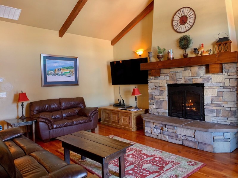 This lovely townhome has an inviting, open floor plan, hardwood floors, stone hearth with propane fireplace, and vaulted beam ceilings and can accommodate up to 6 guests comfortably in three bedrooms and 2.5 bathrooms. The property features an intimate balcony located off of the master suite, and a larger, west-facing balcony with living room access and gas grill for cooking. The modern kitchen with stainless steel appliances and elegant granite counter tops make for plenty of work surface for your inner chef to prepare a memorable meal, which can be enjoyed from either the formal dining table or from counter seating.