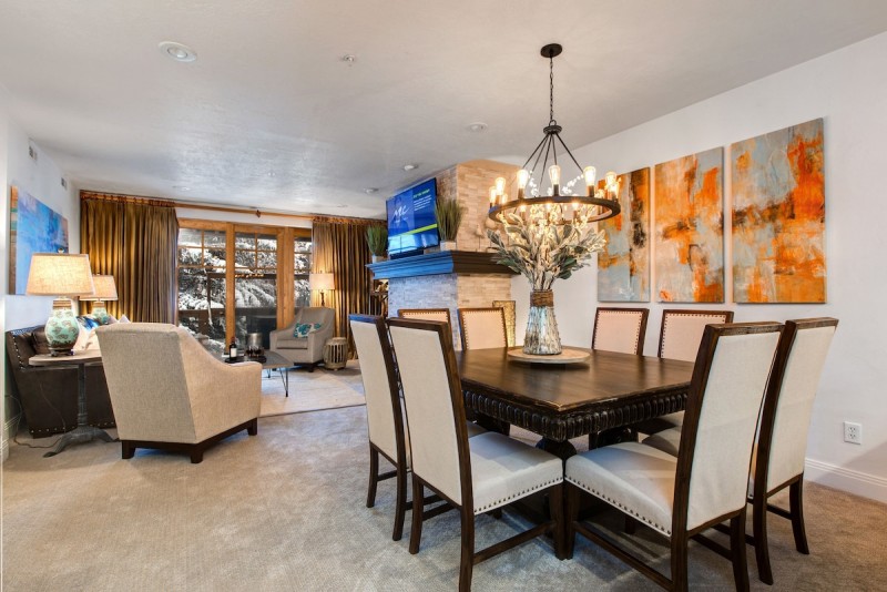 From the moment you enter this beautifully appointed property, it sets the tone for an overall exceptional Park City experience. The open floor plan and mountain comfort interior detail create an inviting ambiance. The kitchen and dining space flow seamlessly into the living room. This open floor plan is fitting for small group entertainment and relaxation. The living space offers ample seating, a gas fireplace, advanced audio/visual systems and cozy vibes all around. From the living room, step right outside onto the private covered deck for a soothing soak in the hot tub.