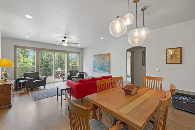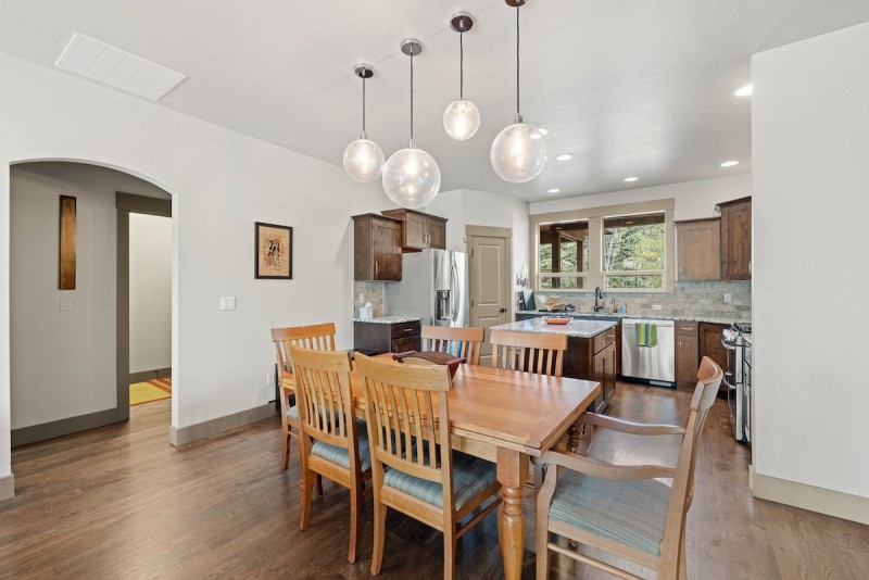 This home is walking distance to downtown McCall, has a fenced yard, large deck, patio, fireplace, and hot tub. Stay connected and entertained with free WIFI, books, and games. There is also an outdoor fire pit for evening gatherings. Keep up your fitness routine with a rowing machine and stationary bike. The property includes a 1-car garage and deep driveway that can accommodate up to four vehicles or a trailer.
