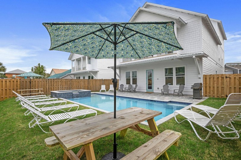 The Sand Box features 6 king master suites with private en-suite baths and 2 amazing bunk rooms with a queen in each and private en-suite baths as well. Relax in one of two living rooms with fully equipped kitchens, ice makers and mini fridge's throughout. The palm tree lined salt water heated pool is one of the largest pools in Miramar Beach and outdoor seating that are perfect for dining under the stars or can be used as a backdrop for a beautiful family photos. There is plenty of luxurious seating and lounge chairs out back for everyone in your group along with high speed Wi-Fi, free games and movies, smart TV's, Netflix, Hulu and more available for your enjoyment!