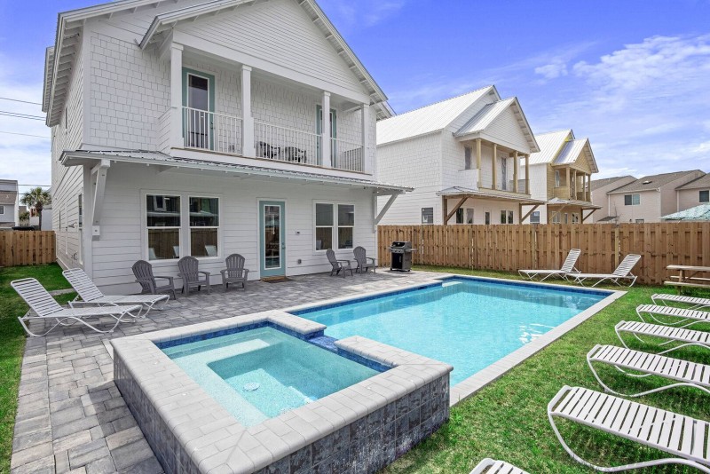 This brand new 8 bedroom, 8.5 bath Miramar Beach Masterpiece is the perfect place if you want to relax and create an unforgettable family vacation The Sand Box is Miramar's newest luxury home you've been looking for! One of Miramar Beach's largest homes this is truly a unique show-place only 2 blocks off the sugar white beaches of Destin. This home features 3 stories, over 5,000 sq. Ft. of exceptional living space, beach view balconies and a spacious privatized 6ft fenced in backyard with a 30x15 heated pool and 8x5 cascading waterfall hot tub! Enough parking for 6 cars which is not an easy find when it comes to beachside living!