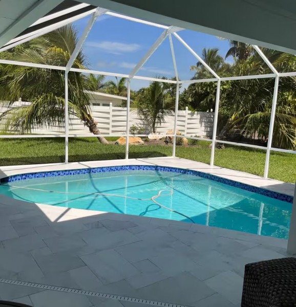 Prime location being only two minutes walk to Siesta Beach entrance from this attractive three bedroom, two bath florida ranch! You live around the ground level pool with ;arge patio doors from the two living areas and kitchen. The home has been freshened with a very nice decor and new furnishing. The pool deck and lanai has a white marble deck that gives it a great feel without getting to hot and a great look! Covered lanai with a comfortable outdoor entertaining sectional and fireplace table. Large stainless BBQ grill and screened cage area. Small patio outside of the screened cage for those that want to get every ray of the sun! Beach chairs and sunning lounges.