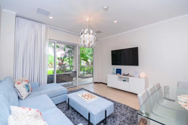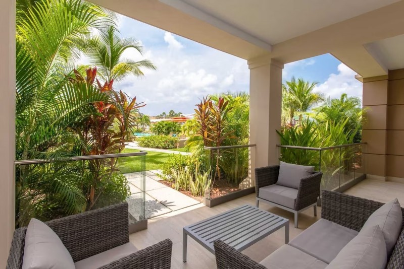 The best-priced 2-bedroom ground floor condo! Amongst the lush tropical gardens, with easy access to the resort's pool, and within only a few steps away from the world-famous Eagle Beach, you can find the Ocean Garden Two-bedroom condo. Situated on the ground floor, this vacation rental condo is perfect for a family escape, vacation with friends, or a romantic getaway. Offering you a deluxe veranda with easy access to all the resorts' amenities, including an alfresco dining area with BBQ-grills, for all your outdoor enjoyments.
