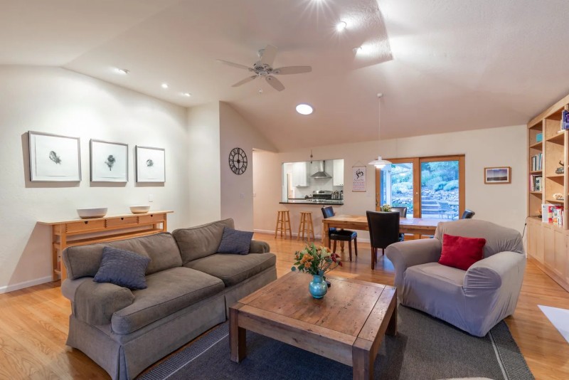 This comfortable and casually decorated home is nestled in a quiet neighborhood in the heart of the Sonoma Wine Country. The inside of the house is spacious with lots of natural light. The backyard offers a garden filled with flowering plants and a raised patio area. This location is perfect for families or mature adults wanting to enjoy the wine country.