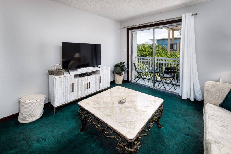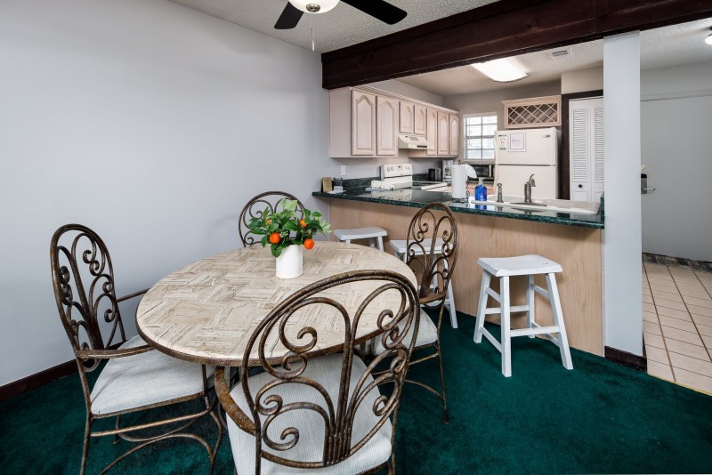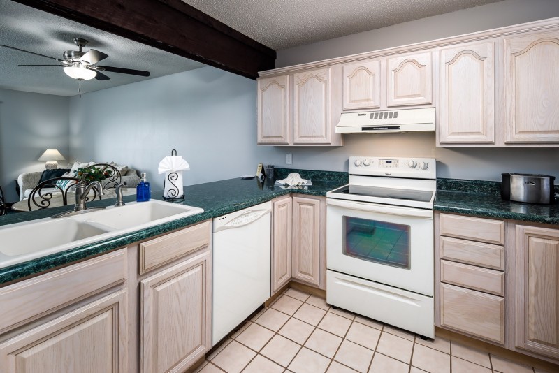 This property includes: A fully stocked kitchen for preparing meals, dining area, a breakfast bar, living room with TV, and private balcony. Two bedrooms, both with queen size beds, and plenty of closet space. A full size bathroom with shower/tub combination. A private balcony. No washer and dryer in unit.