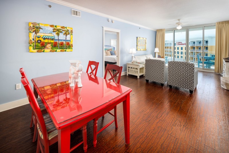 Upscale gorgeous condo with 10ft ceilings, crown molding with platinum grade furnishings with an Island Flare and unique decor through out. Flat screen TV/DVD electronics, granite counter tops, cherry cabinets, stainless steel appliances. Two master suites plus bunk room with two 1/2 baths on the 5th floor. Large spacious unit.