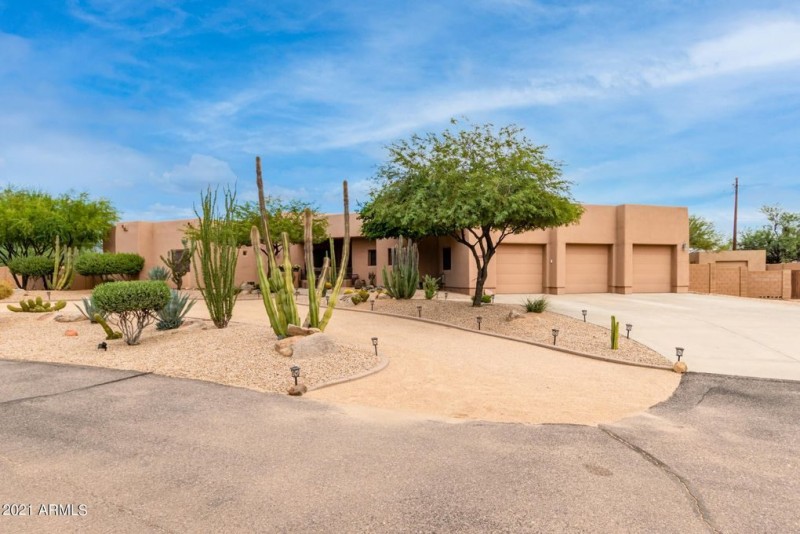 Spectacular home nestled on an oversized lot w/ plenty of outdoor space! This home offers wonderful curb appeal w/refined desert landscape, spacious 3-car garage, circular driveway, courtyard entry, & RV Gate. The chef's kitchen features granite counters, wood cabinets, tile backsplash, center island, pantry, SS appliances, & patio access. Main suite boasts a full ensuite with King bed, dual sinks & walk-in closet. The 2nd and 3rd guest bedrooms offer a Twin over Queen Bunk Beds. So 5 beds total in the home. Stunning backyard is a Desert Oasis ideal for entertaining with a covered paver patio, built-in BBQ, inviting gazebo, sparkling pool***, spa*** with a stone waterfall, & plenty of space to hang out!