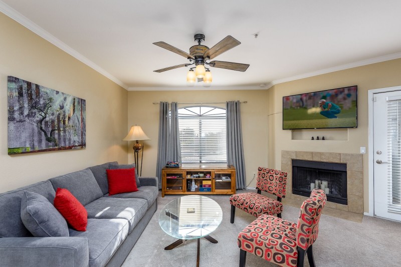 The community center with all of the amenities is less than a 1 minute walk from the front door. There you will have access to a heated pool & spa, fitness room, locker rooms, library, business center, common area living room with television and full kitchen, BBQ area and fire-pit! What more could you ask for? The condo is a close walk to 2 grocery stores (AJ's & Safeway), Starbucks, many restaurants and more... Easy access to Loop 101 Highway, West-World, Kierland Commons, Scottsdale Quarter, TPC Scottsdale & McDowell Mountain Golf; as well as great hiking trails!