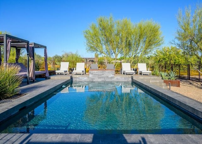 Secluded custom modern 5 bedroom sleeps up to 12 w/ HUGE lot, heated pool*, hot tub, pickleball court and putting green (all gear included). Property INCLUDES MAIN HOUSE & CASITA. Very quiet area with a modern elegant touch. Minutes away from the town of Cave Creek and golfing, hiking, shopping.