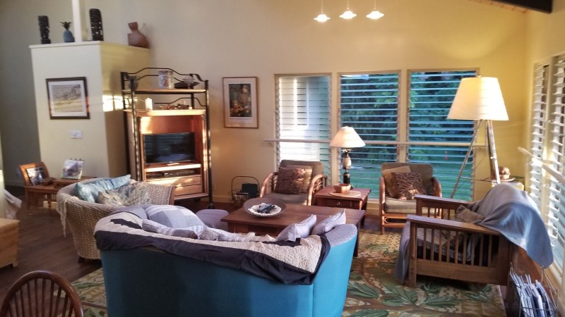 House Description: Here is a brief description. There are two large bedrooms with king size beds in each bedrooms. The lanai has another futon couch and a sofa that fold out. The living room has a sofa and two large comfortable chairs.