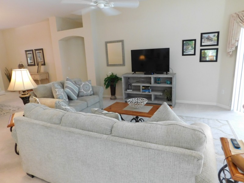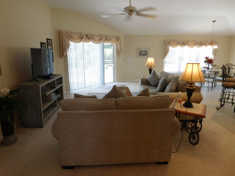 Wonderful 3/2 with the 3rd bedroom set up with twin Beds. Newly Furnished and decorated, it is a great place to stay. A Large Birdcage covering a Beautiful Pool to enjoy the Florida Weather. Located just above 466 close to Restaurants, Retail Stores and Groceries. Comes with a Golf Cart. Pet Friendly!.Property Categories