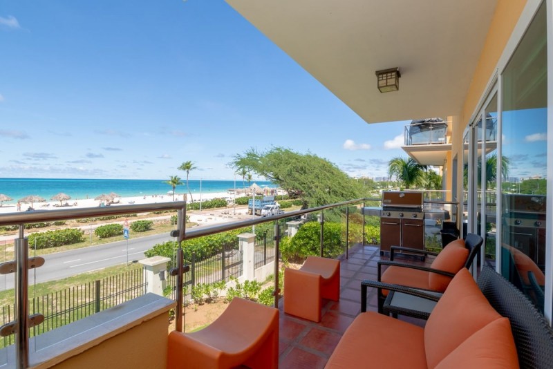 The most exciting area of this unit is the private balcony off of the living room, overlooking the world-famous Eagle Beach! The balcony is provided with lounge chairs and patio furniture plus a large BBQ-grill.
