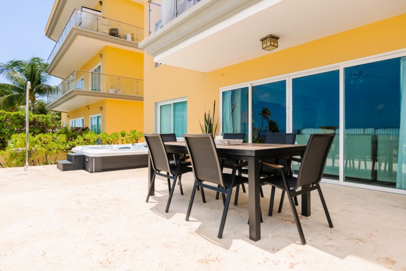 The most exciting area of this unit is the private patio off of the living room, overlooking the world-famous Eagle Beach! Outdoor lounge chairs and patio furniture including a 6-seat outdoor dining table and full-size BBQ grill. One of the resort's three large swimming pools is actually less than 10 yards from this unit's garden! Free broadband wired and wireless internet, three cable TVs, (in the living room and each bedroom) are available for your extra comfort. This unit provides you with 2,500 sq. ft. of living space, plus an additional 1,200 sq. ft. of private patio and garden space. This unit is located in the Eagle (=beach-side) building on the ground floor, right on the Eagle Beach.-Sleeps max 6.