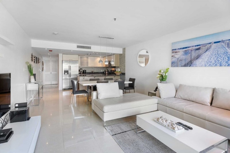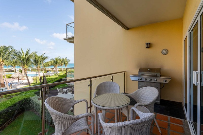 The Ambiente Elegante Two-bedroom condo is elegantly furnished to maximize your vacation experience in a spacious, modern, and relaxing environment. The living area has a balcony with a 4-seat dining table and BBQ-grill plus amazing resort pool and ocean views. The living room has a large L-shaped sofa, large TV, a full-sized fully equipped kitchen with 4-bar stools plus a separately 6-seat dining table. The hallway that lends access to the bedrooms, has access to the third bathroom with a shower and the laundry closet with a washer/dryer plus the storage facility with the beach chairs.