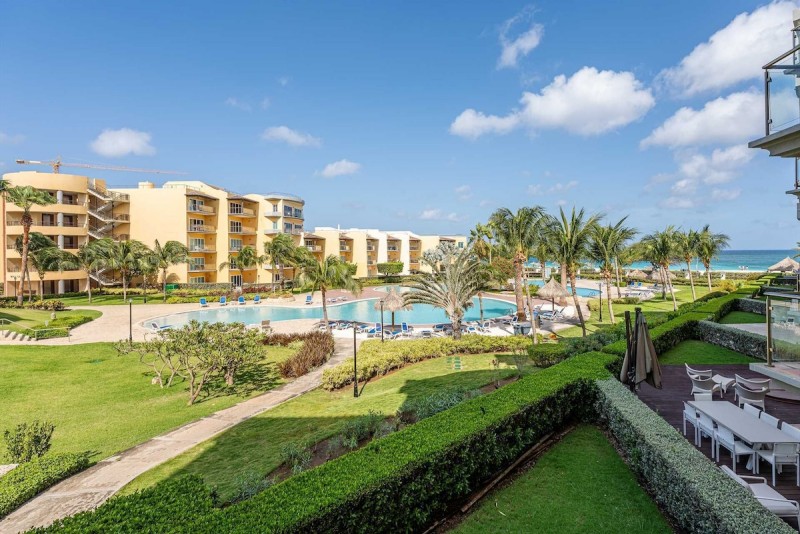 Oceania Deluxe Beachfront Condo Resort has 3 large swimming pools and a kid's shallow pool surrounded by sunny and shaded lounges areas. The 2 beach access gates are only 25 yards from Eagle Beach. Resort amenities include 2 fitness rooms, a sauna, a business center, and a kid's playroom. Enjoy free parking within the secure 24/7 gated complex. Sports enthusiasts have access to tennis, racquetball, squashball, pickleball, and padel courts at no cost (bring your own equipment). Immerse yourself in the tranquility of the resort, a stroll on the beautiful beach, or a swim in the tranquil Caribbean sea.