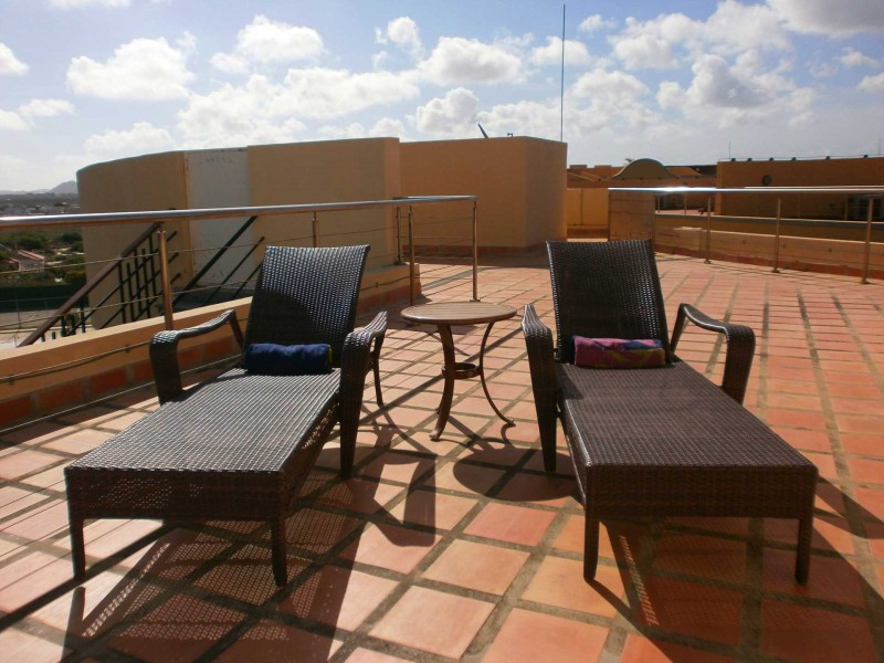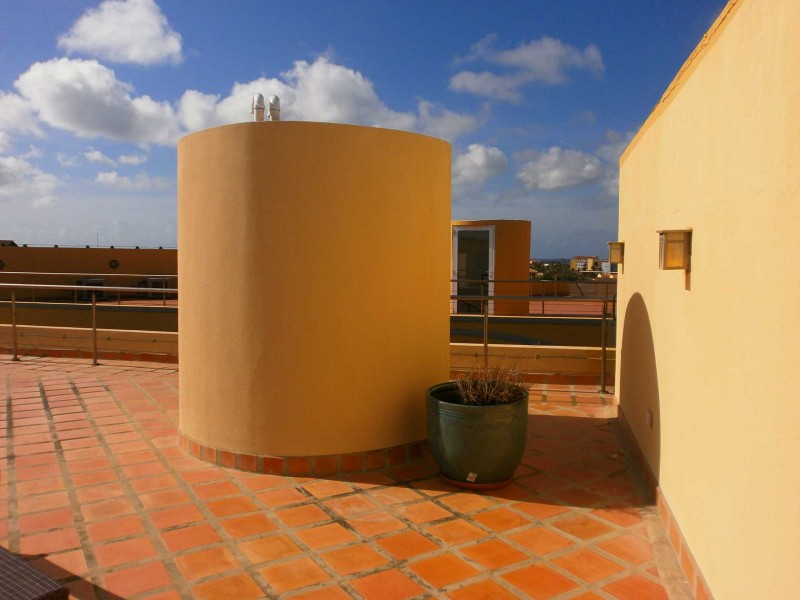 This unit provides you with 950 sq. ft. of living space, plus 1,200 sq. ft. of private roof terrace space. A code-lock safety box (large enough to store a laptop pc), free Wi-Fi, two cable TVs (in the living room and bedroom), a DVD player and an iPod compatible stereo set (bring your iPod if you have one!) are available for your comfort. This unit is located in the Boca Grandi (beach-side) building on the fifth or top floor. Sleeps max 4.