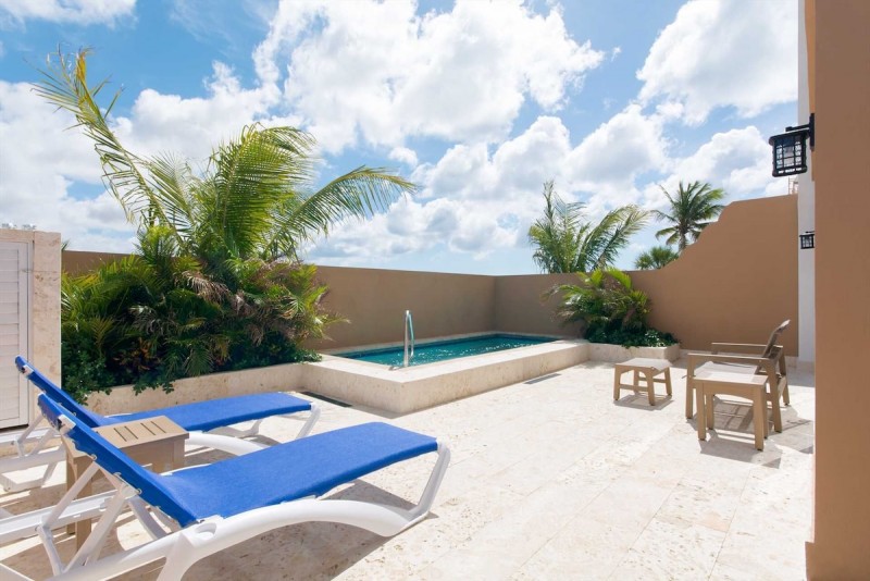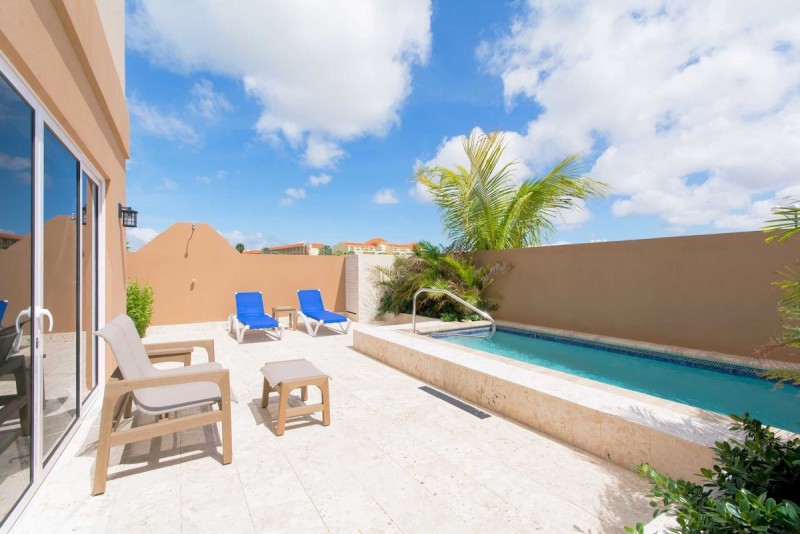 LeVent Beach Resort Aruba - Luxurious 2 BR townhome with private plunge pool at Eagle Beach, rooftop terrace with BBQ grill and partial beach view, 2.5 BA, access to resort pool, hot tub, & gym; sleeps 6.