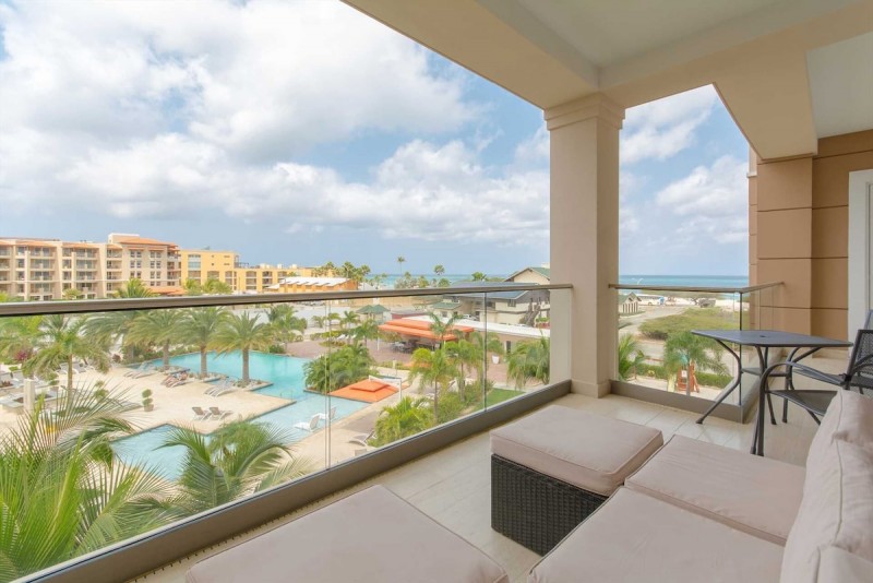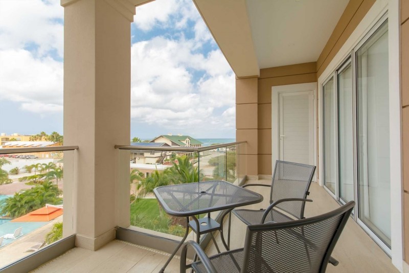 Get into the Aruba holiday spirit with friends and family at the Miramar Pleasure Two-bedroom condo. This vacation rental retreat overlooking the LeVent Beach Resort Aruba pool area and the world-famous Eagle Beach, are just a few steps away and perfect for a warm-weather trip. The balcony with seating and a 3-piece bistro set offers a great area to enjoy the beach view with your morning coffee or a sunset cocktail.