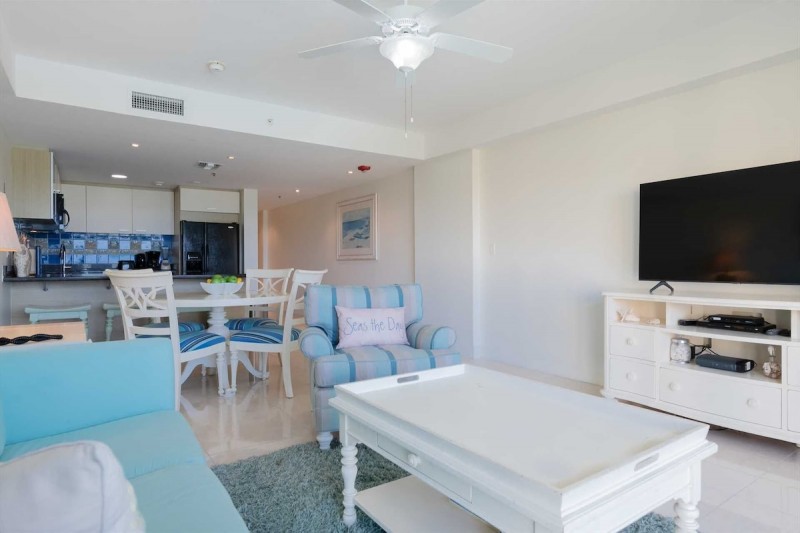 With 1,600 sq. ft. of living space, this unit ensures ample space for relaxation. Amenities include a code-lock safe box, two cable TVs (in the living room and primary bedroom), complimentary Wi-Fi, and free parking. Beach essentials such as chairs, towels, and a cooler are provided. This unit is located in the Arashi building of the Oceania complex, on the third floor.