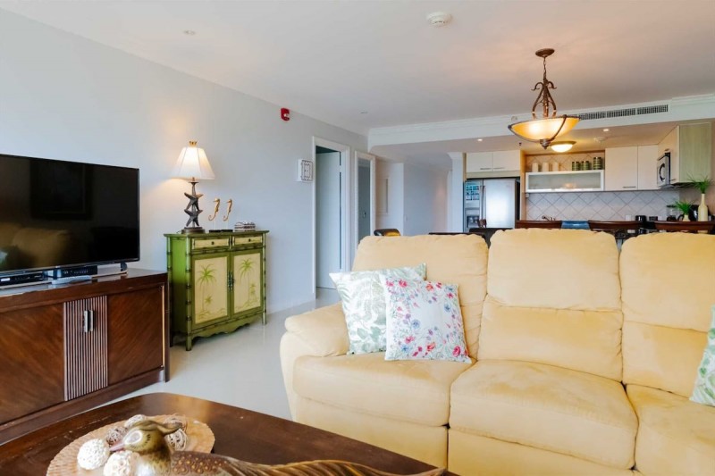 This condo rental has about 1,300 sq. ft. of living space. Enjoy the convenience of free Wi-Fi in the condo, a code-lock safe, central air conditioning, 3 cable TVs (every bedroom and living room), free parking space, beach towels, beach chairs, and a cooler for your beach outings. It can accommodate up to 6 guests in 3 beds and 1 sofa bed. This unit is in the Eagle building on the fourth floor (adjoining the Glamour View Studio condo).