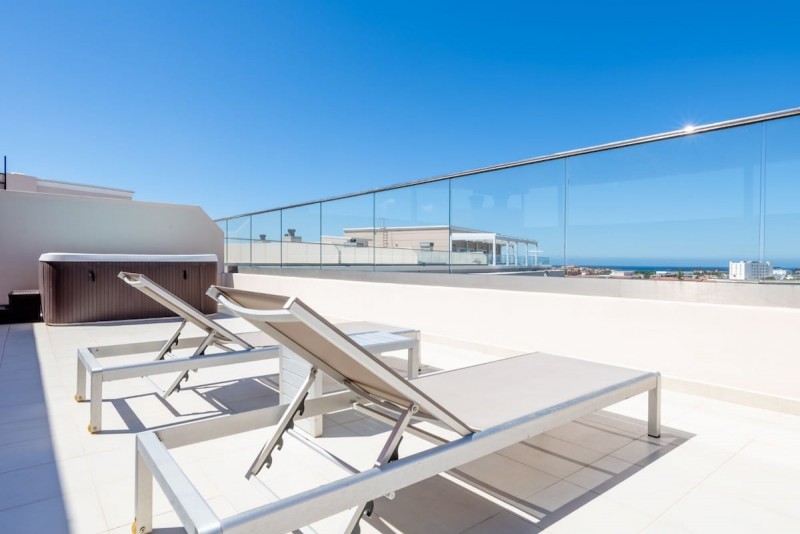 Sun-seekers will appreciate the Scenic View Penthouse Two-bedroom condo with direct access to its private rooftop with Hot Tub, loungers in the sun, a shaded living and dining area, and an outdoor prepping area with a sink and large BBQ-grill. With dreamy panoramic views of the Caribbean Sea, its two outdoor living areas blend seamlessly with its elegant interior, providing an exquisite setting for relaxation and entertainment with family and friends. The stunning views continue on the balcony that stretches across the living room and both bedrooms with a wall of sliding glass doors. The Scenic View Penthouse Two-bedroom condo is a sophisticated vacation rental penthouse located at the LeVent Beach Resort Aruba, the newest vacation rental resort on our 'One Happy Island' of Aruba.