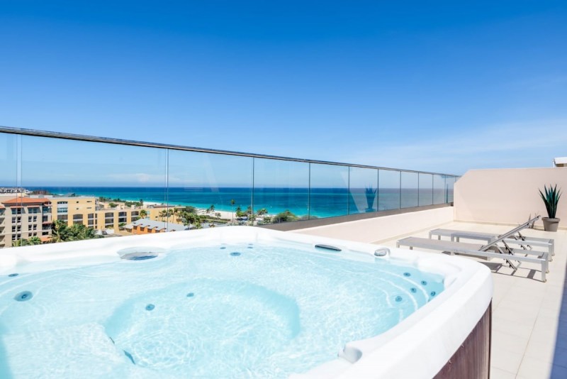 LeVent Beach Resort Aruba - Luxurious Two-bedroom Penthouse condo at Eagle Beach with a private rooftop with PANORAMIC VIEWS, BBQ-grill, Hot Tub, with Exclusive Platinum Services & Amenities, and resort pool; sleeps 6.