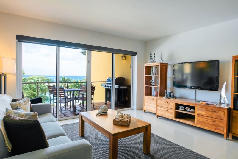 There are two large balcony terraces, adjacent to the living room and the primary bedroom, each with breathtaking ocean views. This unit provides you with 1,600 sq.ft. of living space. Cable TV, two large high-definition flatscreen TV's (in living room and primary bedroom), a DVD player, free broadband wired and wireless internet, and stereo set are all available for your comfort. This unit is located in the Boca Catalina building on the third floor. -Sleeps max 6.