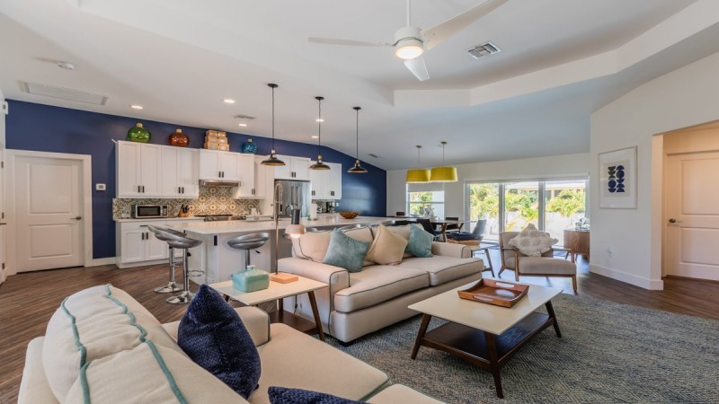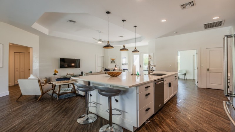 Four bedroom two bath pool home on a quite street with tropical landscaping,...