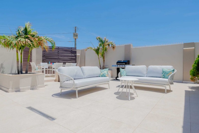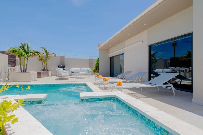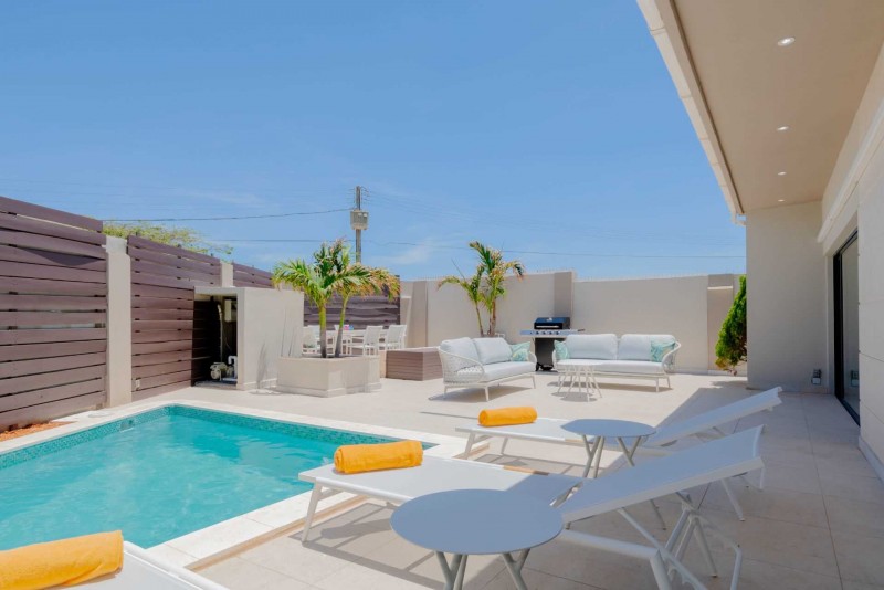 Free broadband wireless internet and cable TV are all available for your extra comfort and leisure. Each bedroom and living room has its own individual Air Conditioning - Sleeps 8; additionally, $15.00 per night for each additional guest, up to 10 guests in total. This villa is a true gem, combining stylish interiors, a breathtaking garden area, and luxurious amenities. A rental car is recommended.