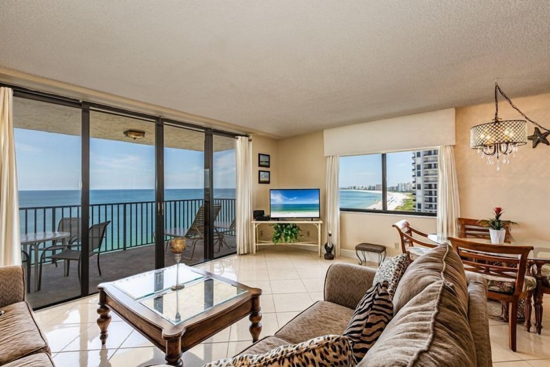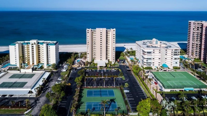 Beachfront 2 bedroom/2 bathroom condo with spectacular views!! There is no better place to enjoy the Paradise Coast. From the balcony you will enjoy the breathtaking views of the Gulf of Mexico and white sand beaches. This corner unit is light and bright with Tommy Bahama styled living room furniture, and just as spectacular views of the beach and the island from both the master and guest bedrooms. Relax in the Master bedroom suite with king size bed, TV and en-suite bathroom.
