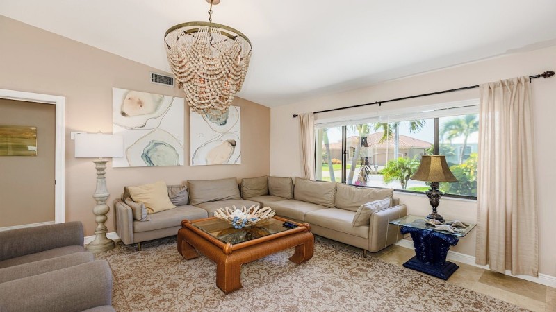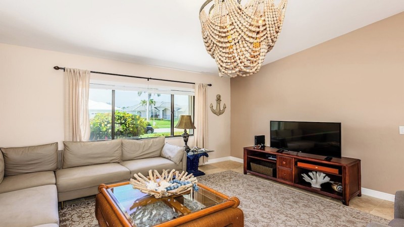 This is a beautiful three-bedroom, pool/spa home is located on Marco Island. This waterfront home has been recently upgraded and features top of the line systems and appliances, high-end furniture with a coastal contemporary feel.
