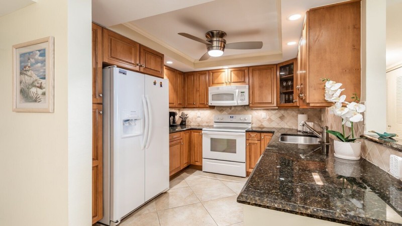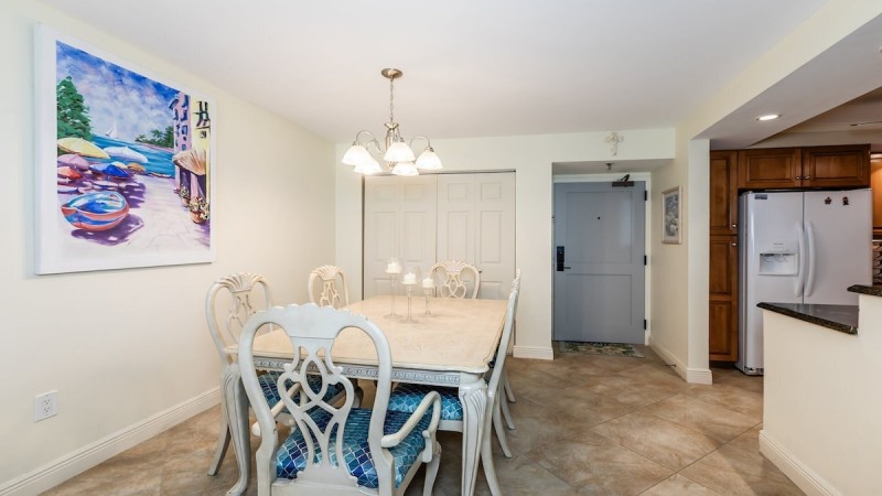 Views of Tigertail Beach and sunsets from this 5th-floor balcony that extends the whole length of the condo. The living room has two leather sofas, a chaise lounger, and a flat-screen TV. The dining room table seat 6 guest comfortably. The master bedroom has a king bed plus a twin bed, flat screen TV, and an en-suite bathroom with a granite top vanity and walk-in shower. The guest bedroom has a queen bed and a twin and a flat-screen TV.