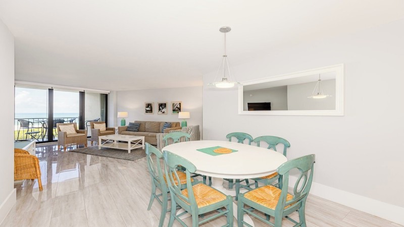 This condo offers guests resort-style amenities such as a pool, fitness center, beach access, tennis, and pickleball courts.
