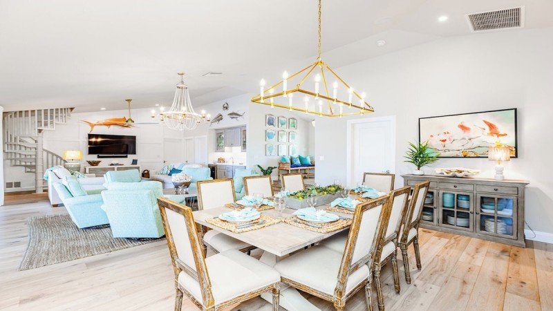 577 Tigertail Court is a beautiful four-bedroom property that features seamless transitions from indoor living to outdoor rest and relaxation. With an open concept floor plan, a gourmet kitchen, two levels of living space, breathtaking views, this luxurious vacation rental will completely change the way you vacation on Marco Island.