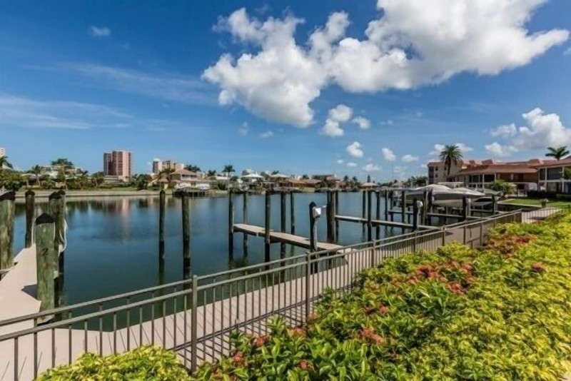Direct Access waterfront condo on the south end of Marco Island close to the south beach access (approximately .04 miles). 2 bedroom 2 bath corner unit on the ground floor convenient to parking and easy access. Tommy Bahama inspired furnishings through out the condo and beautifully maintained, also has washer and dryer. Heated community pool faces west with possible sunset view, extra wide waterway, BBQ area and assigned parking.