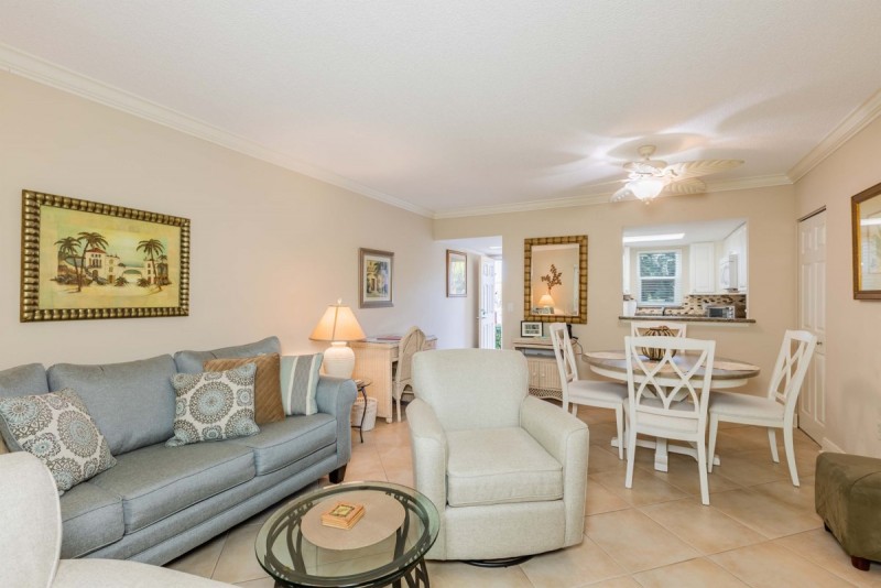 Beautiful 1st floor condo located close to public beach. Centrally located within walking distance to the beach, restaurants, and shopping. This location is absolutely wonderful! The condo is located at the rear of the complex which provides you with more privacy. The screened in Lanai is surrounded by blooming tropical flowers! The extra storage and laundry are located steps from your front door.(literally next door)The condo is completely furnished (just bring your toothbrush!) and has WiFi, Cable, and Netflix. There is a sleeper sofa in the living room as well as beach chairs, beach cart and umbrella’s