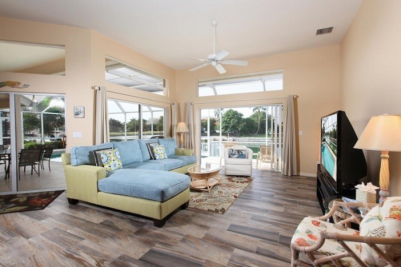 Spacious 3 bedroom, 2.5 bath waterfront home with south western exposure close to beaches and shops. The décor is light and elegant, featuring a tropical theme and a warm, sandy color palette. The formal living room is spacious and airy with a wide sliding glass door that provides views of the pool and the dock and canal beyond. The formal dining room seats six and is a perfect location to dine with guests or family. There is also a small breakfast nook in the kitchen for every day dining. The kitchen is very large, spacious, and well equipped.