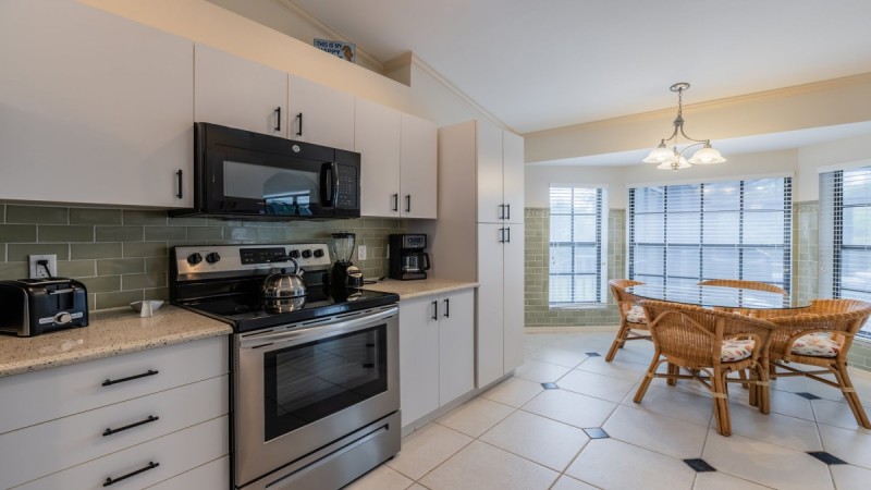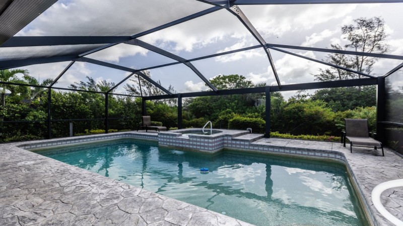 Spacious kitchen and a breakfast area overlooking the garden. There is also a dining room that seats 6 guests. Relax poolside or soak in the spa. There is a covered area with a dining table and chairs so that guests are able to eat outside and enjoy the beautiful Florida weather.